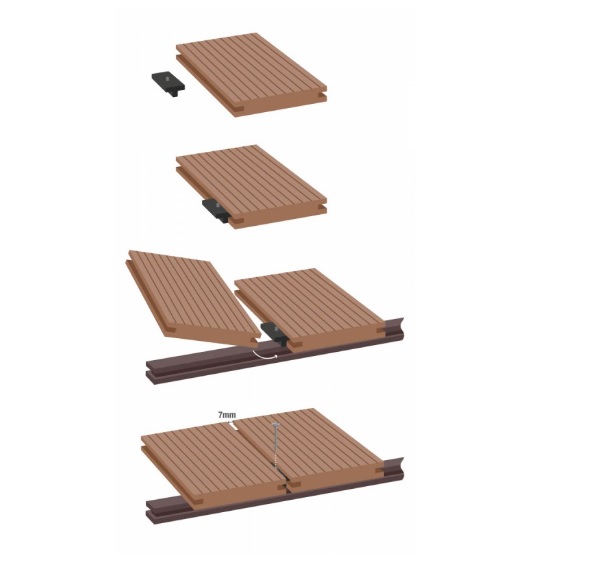 Κλιπ PVC για εγκατάσταση δαπέδου WPC με κρυφά κλιπ τοποθέτησης.